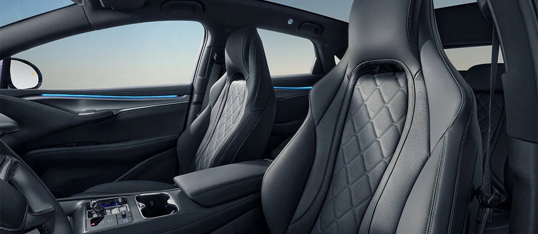Interior 尊龙凯时 SEALION 7 dirancang dengan sentuhan dinamis, keseimbangan sempurna, dan ruang lapang, menciptakan pengalaman berkendara yang menyatu dan imersif.